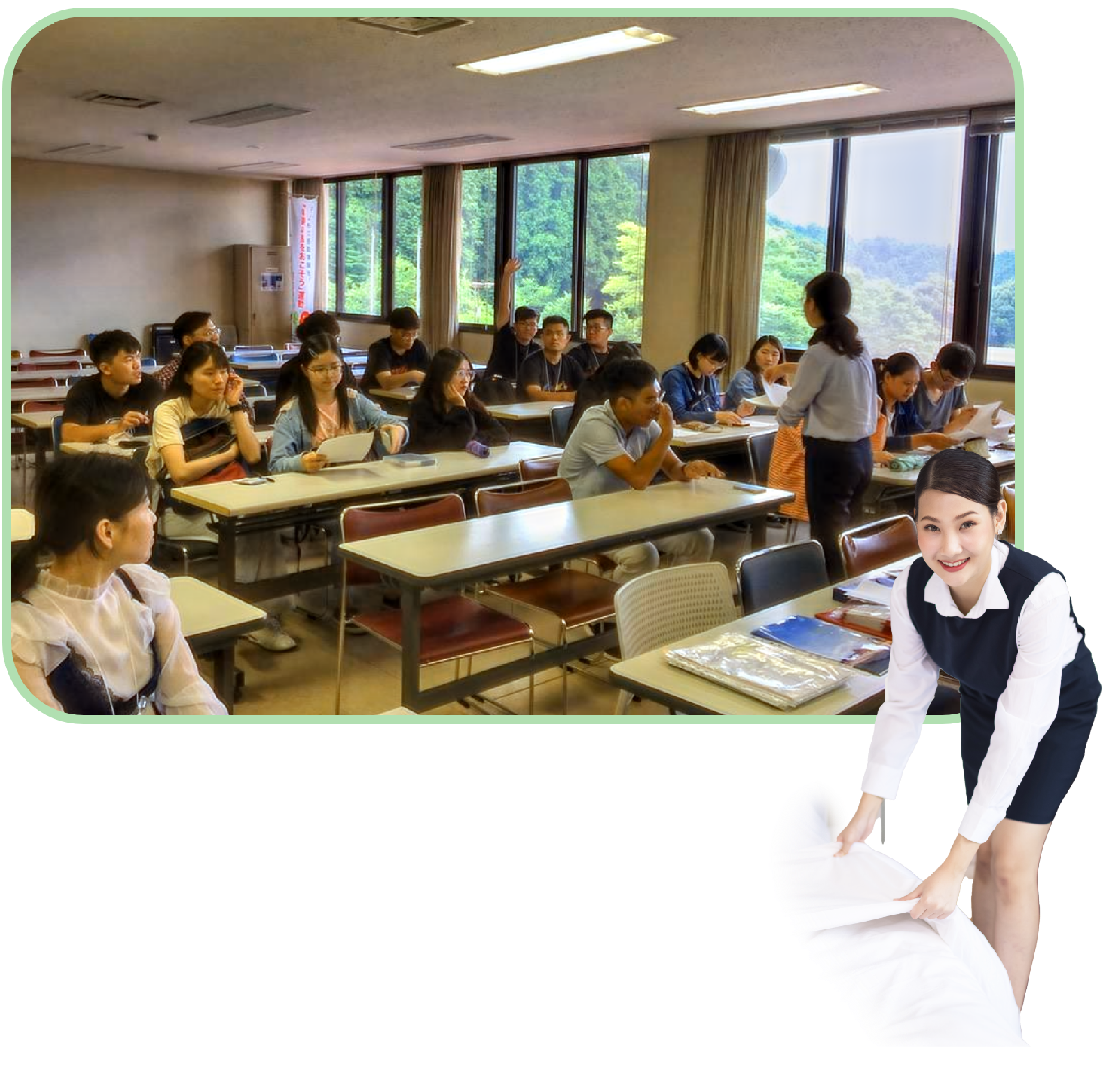 マッチング成立後、人材入国手続き/来日後のフォローアップ/外国人雇用に関する様々なアドバイスを行っています。来日前研修を約1ヶ月間実施することで、勤務スタートをサポートし、外国人人材が初めての企業様でも安心してご利用いただけます。